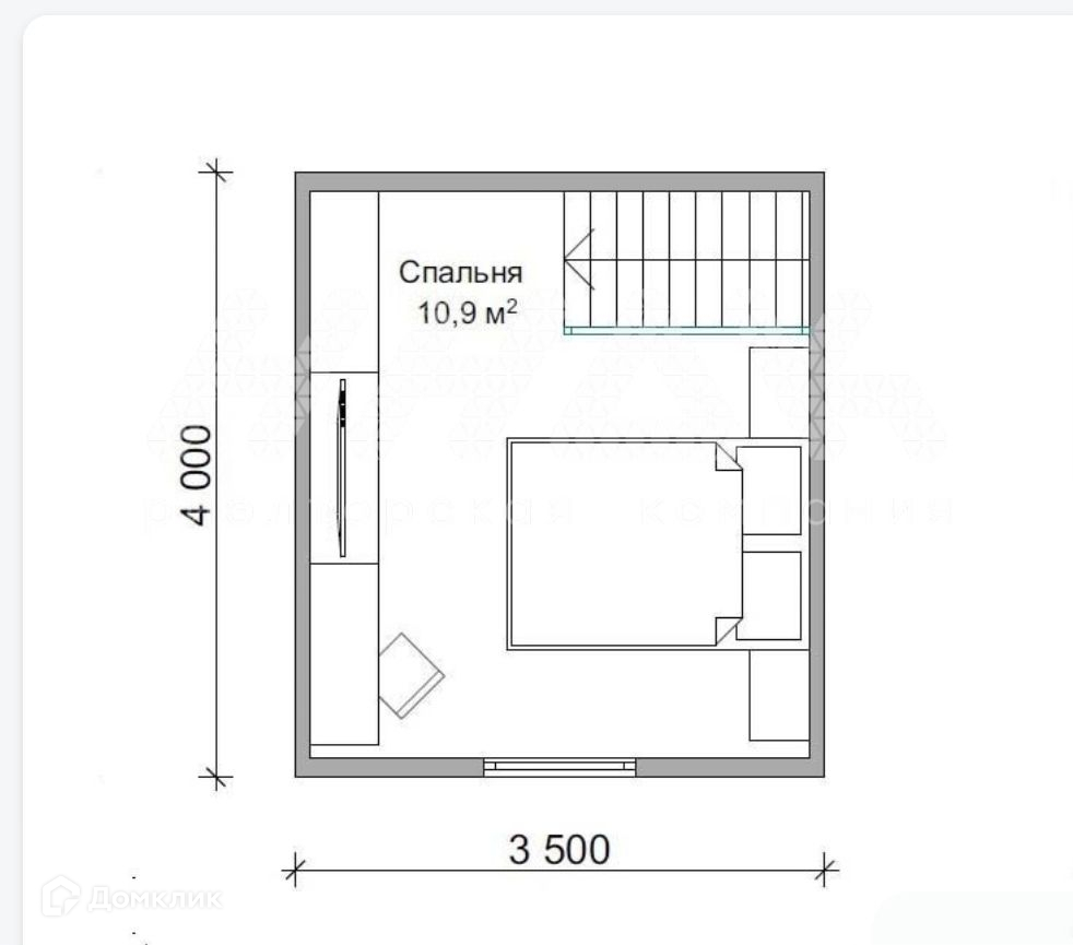 На 1м этаже: кухня 8,; кв.м., гостиная 8,6 кв.м., крыльцо; на 2м этаже спальня 10,9 кв.м.
