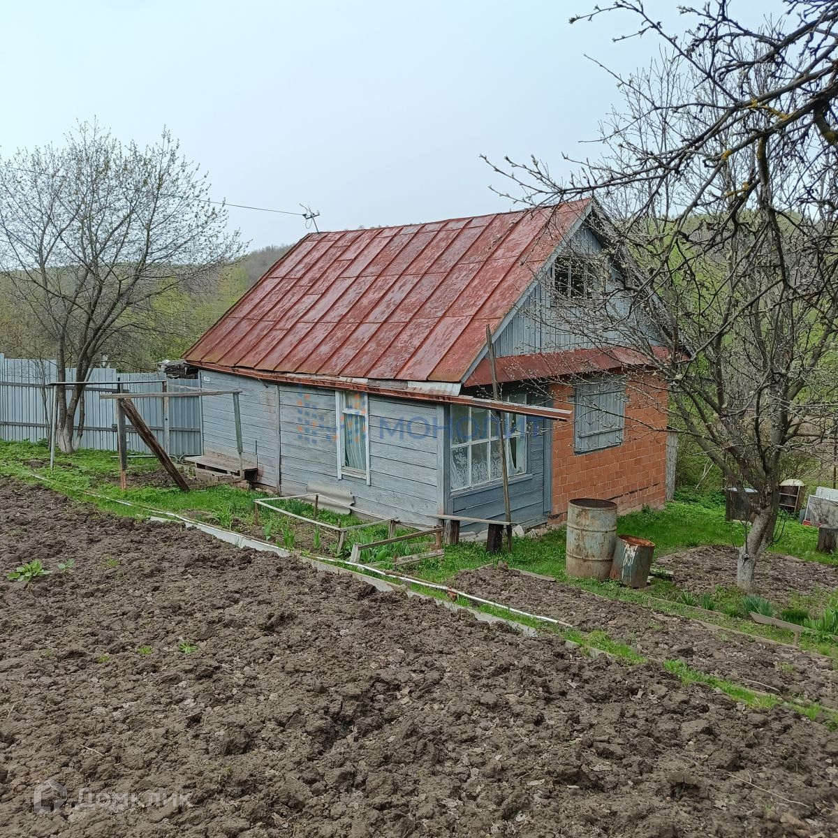 Участок за забором, есть возможность увеличить участок на 2 сот. бесплатно, собственник там сажает картошку.