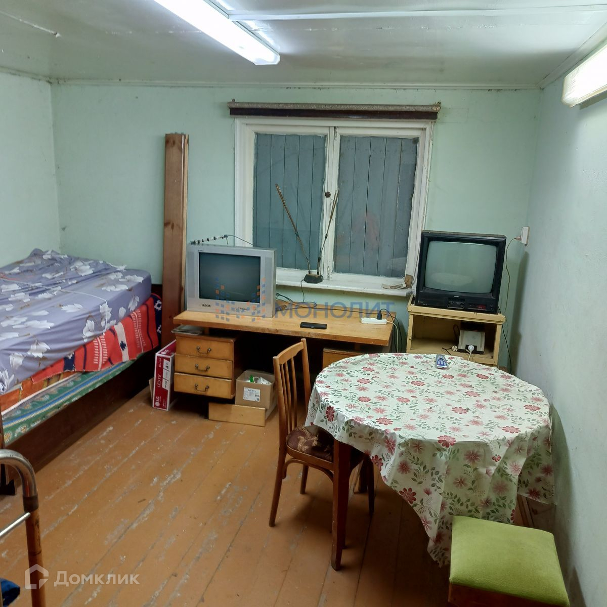 на первом этаже - комната и кухня; на втором этаже – спальная. Есть деревянная веранда, погреб .