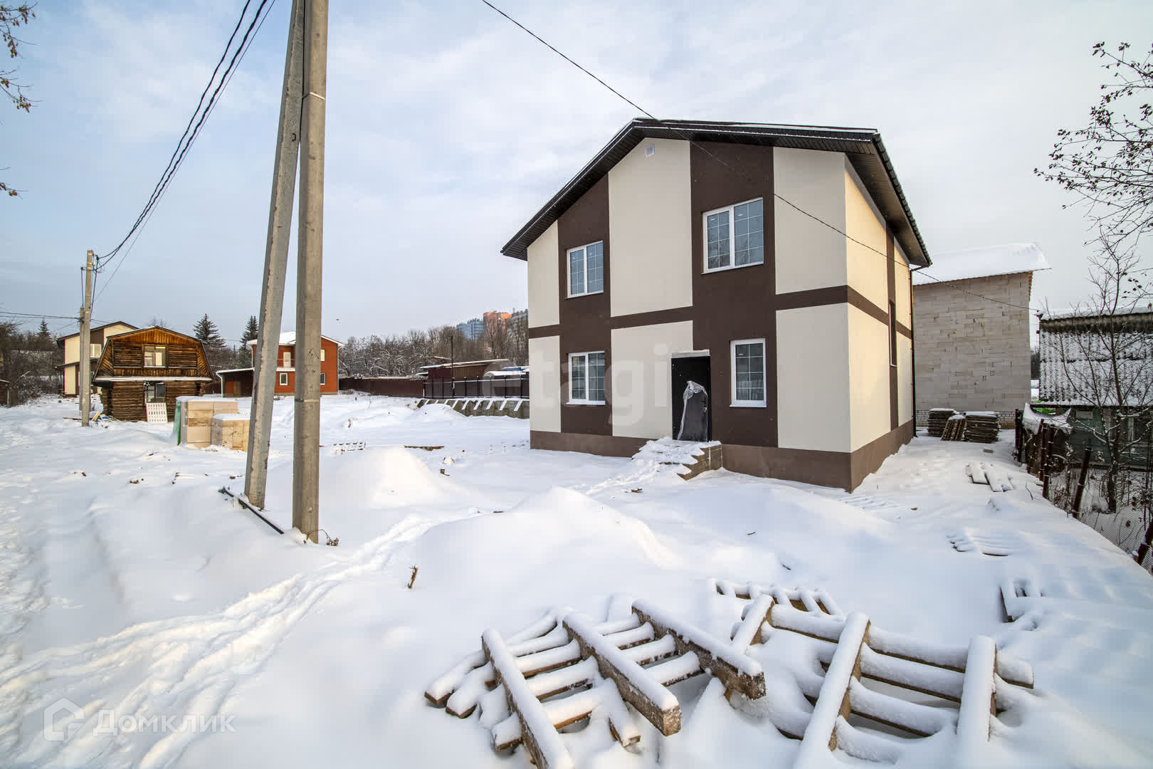 Обеспечен круглогодичный подъезд к жилому дому. Район активно застраивается. В шаговой доступности вся необходимая социальная инфраструктура: школа 524 м., детский сад 750 м., автобусная остановка 400 м., продуктовый магазин 450м.