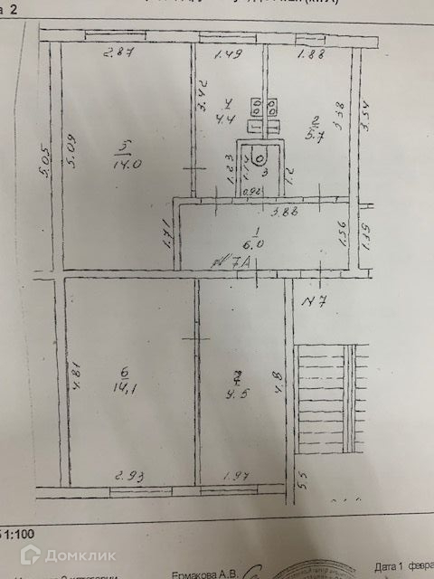Общая площадь 54.7 м2