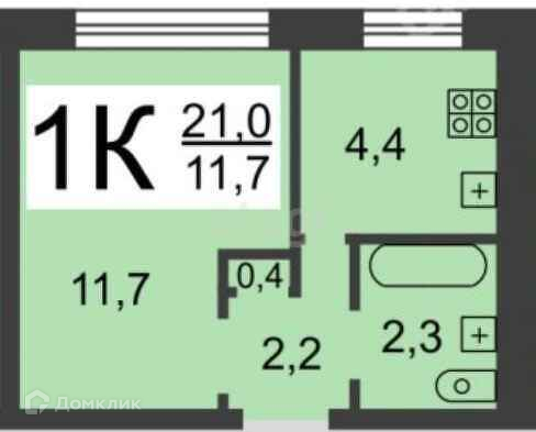 Общая площадь 21.6 м2