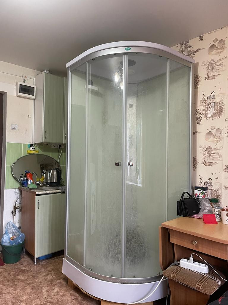 Пластиковые окна. В комнату заведена вода, установлена душевая кабина.