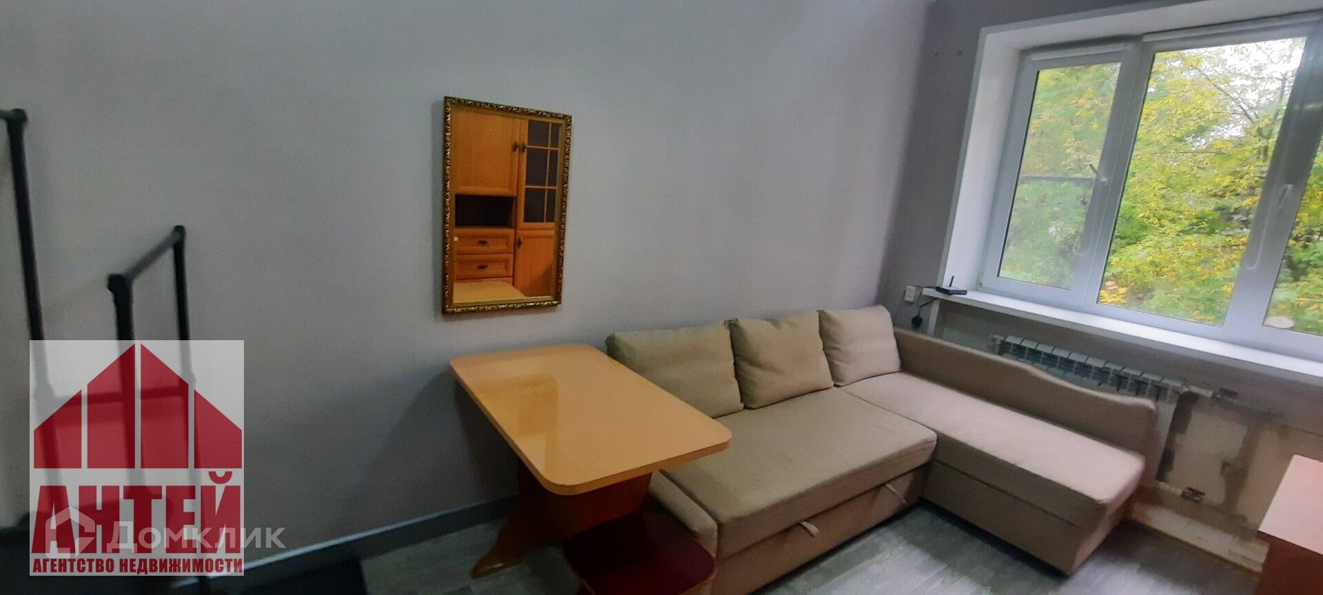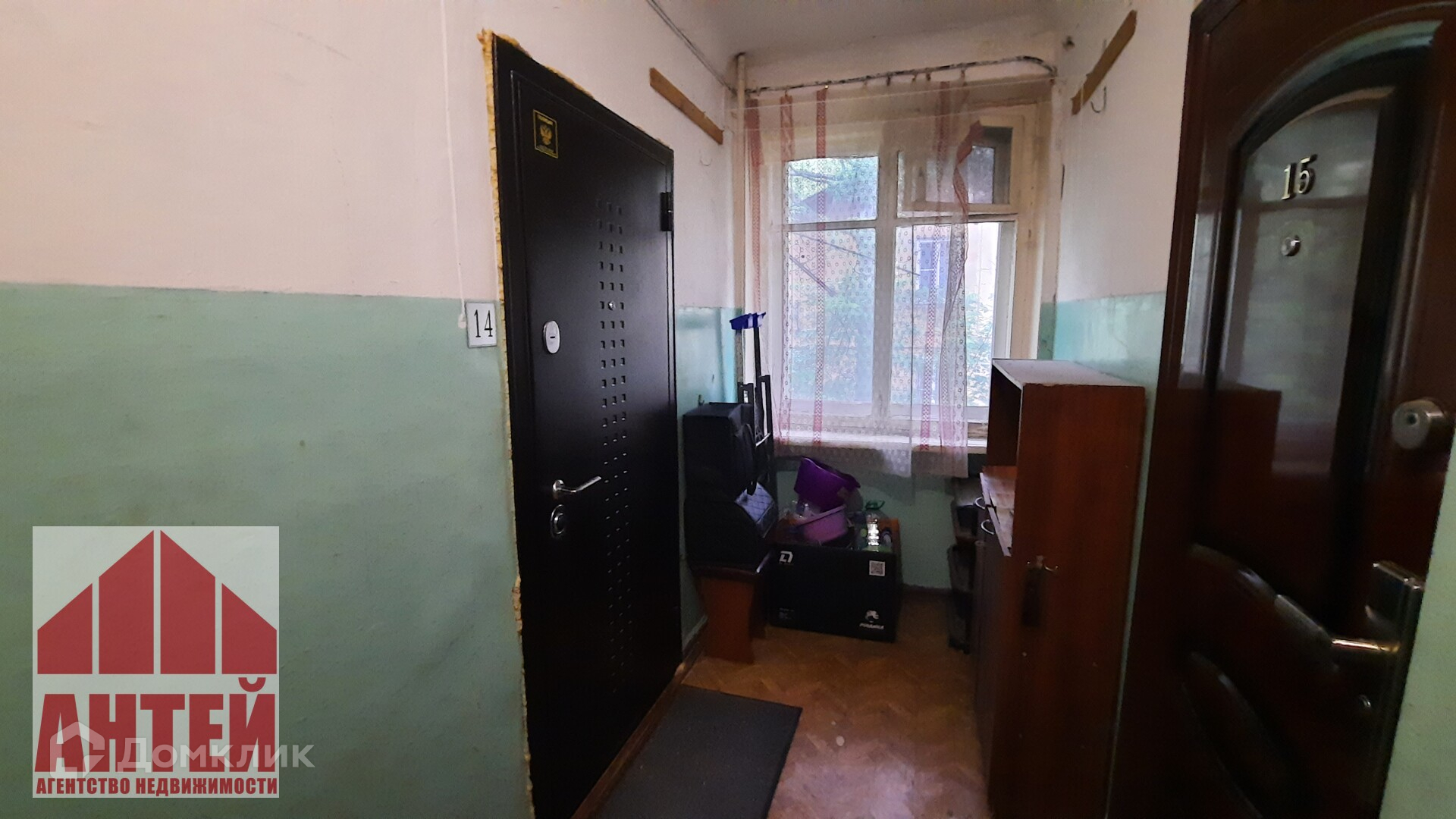 Первый этаж очень высокий. Окно пластиковое, выходит на обратную сторону дома, в зеленый двор. Комната угловая, но уже позаботились и сделали утепление стен. Плюс дополнительно увеличили радиатор отопления, он биметаллический. Входная дверь новая.