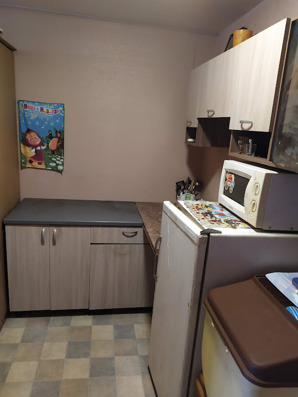 В комнате обустроена своя кухонная зона.