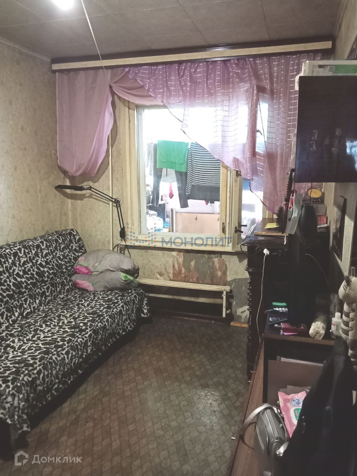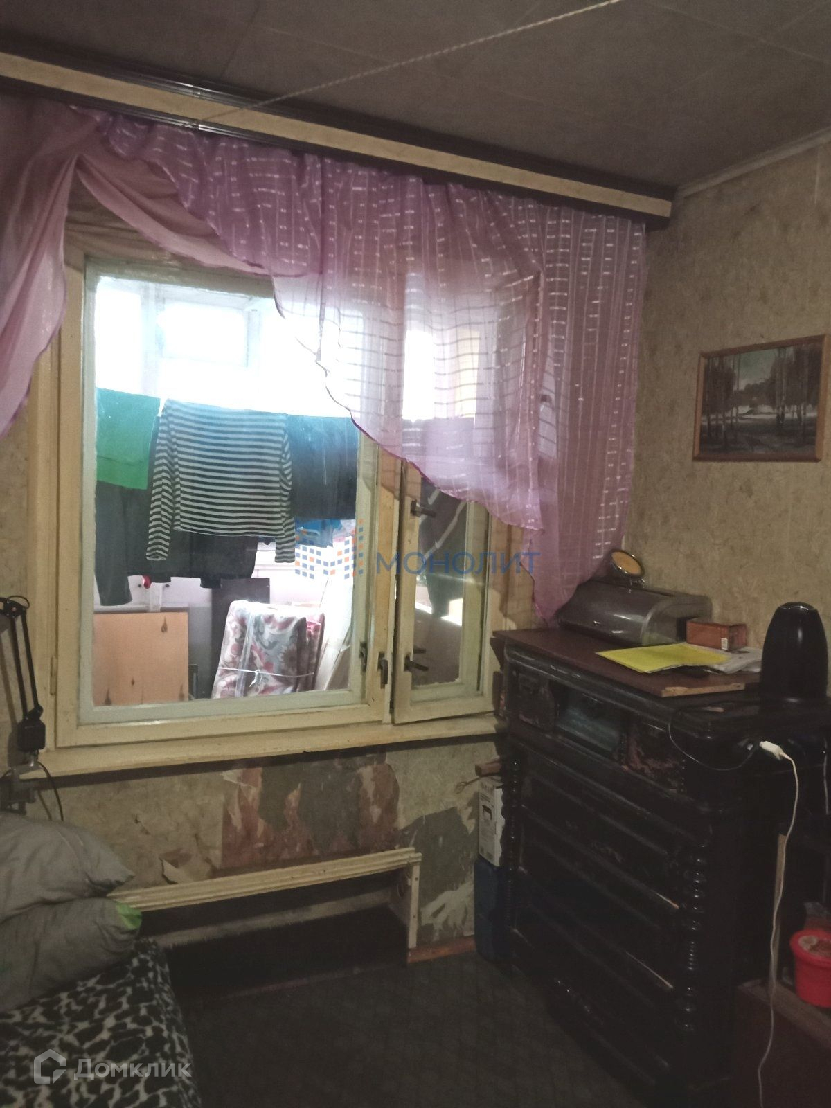 Комната 9м2, с лоджией, требует косметического ремонта. Места общего пользования - чистые. Первый этаж - высокий, с цоколем - на лоджии есть погреб. Во дворе - парковка, местоположение дома - очень удачное - хорошая транспортная развязка, множество магазинов, аптеки, поликлиника, школа, садики, Сормовский парк, зоопарк Лимпопо - все в шаговой доступности.