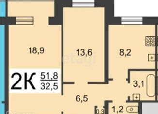 Продается двухкомнатная квартира, 57 м2, Краснозвёздная улица, 6