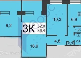 Продажа трехкомнатной квартиры, 64.2 м2, улица Дьяконова, 10А