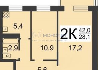 Продажа 2-ком. квартиры, 43.1 м2, улица Крылова, 6А