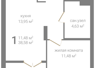 1-комнатная квартира на продажу, 38.58 м2, Правдинская улица, 41