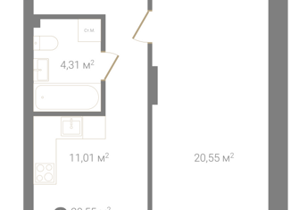 1-ком. квартира на продажу, 32 м2, Светлогорская улица, 2Б