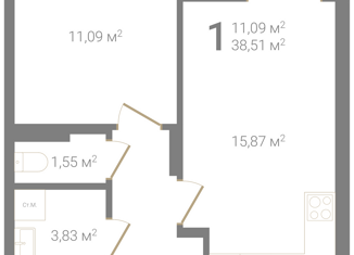 Однокомнатная квартира на продажу, 38.51 м2, Правдинская улица, 41