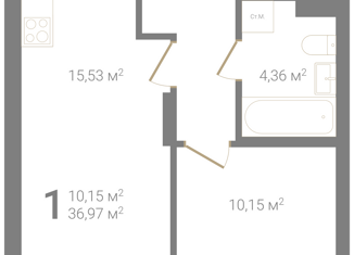 Общая площадь: 36.97 м2