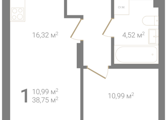 Продажа 1-комнатной квартиры, 38.75 м2, Правдинская улица, 41