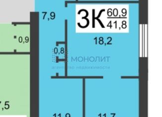 Продажа трехкомнатной квартиры, 63.1 м2, улица Генерала Зимина, 4