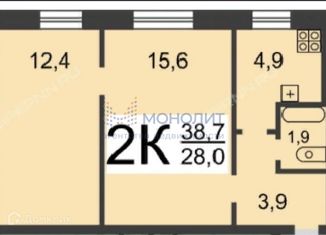 Продам двухкомнатную квартиру, 38.7 м2, улица Гребешковский Откос, 5