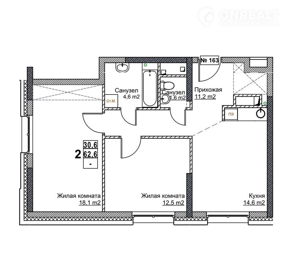Общая площадь 62.6 м2