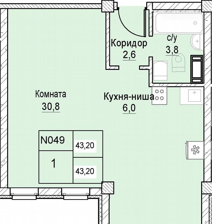 Общая площадь 43.2 м2