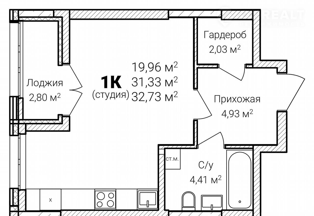 Общая площадь 32.7 м2