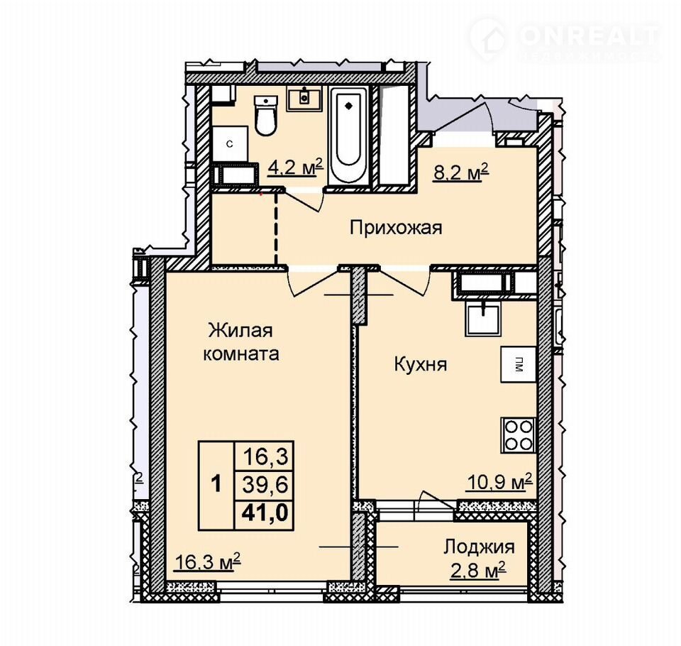 Общая площадь 41 м2