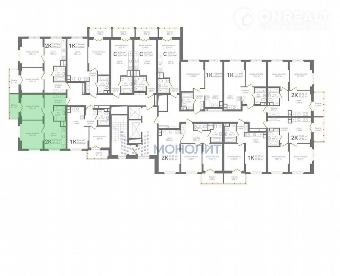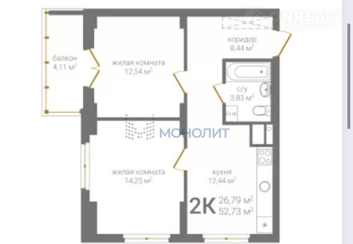 2-комнатная квартира, 52.7 м2, этаж 5 / 20, на продажу в Нижнем Новгороде, 2-я Оранжерейная улица, 6А