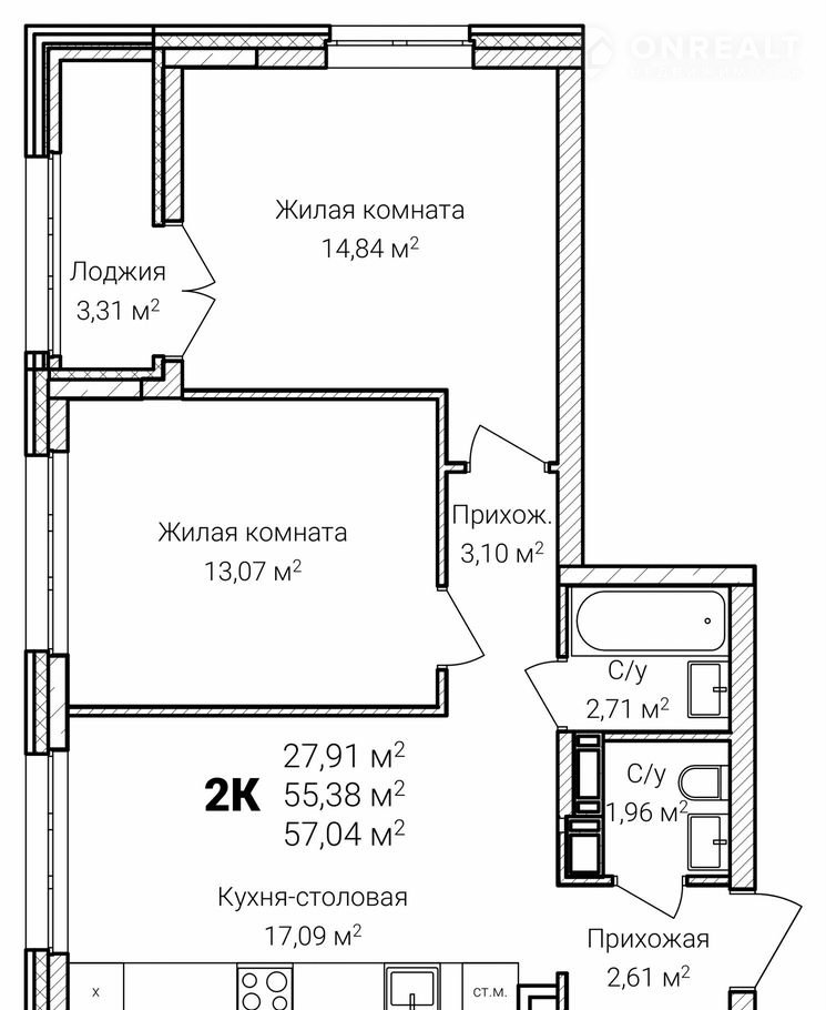 Общая площадь 57 м2