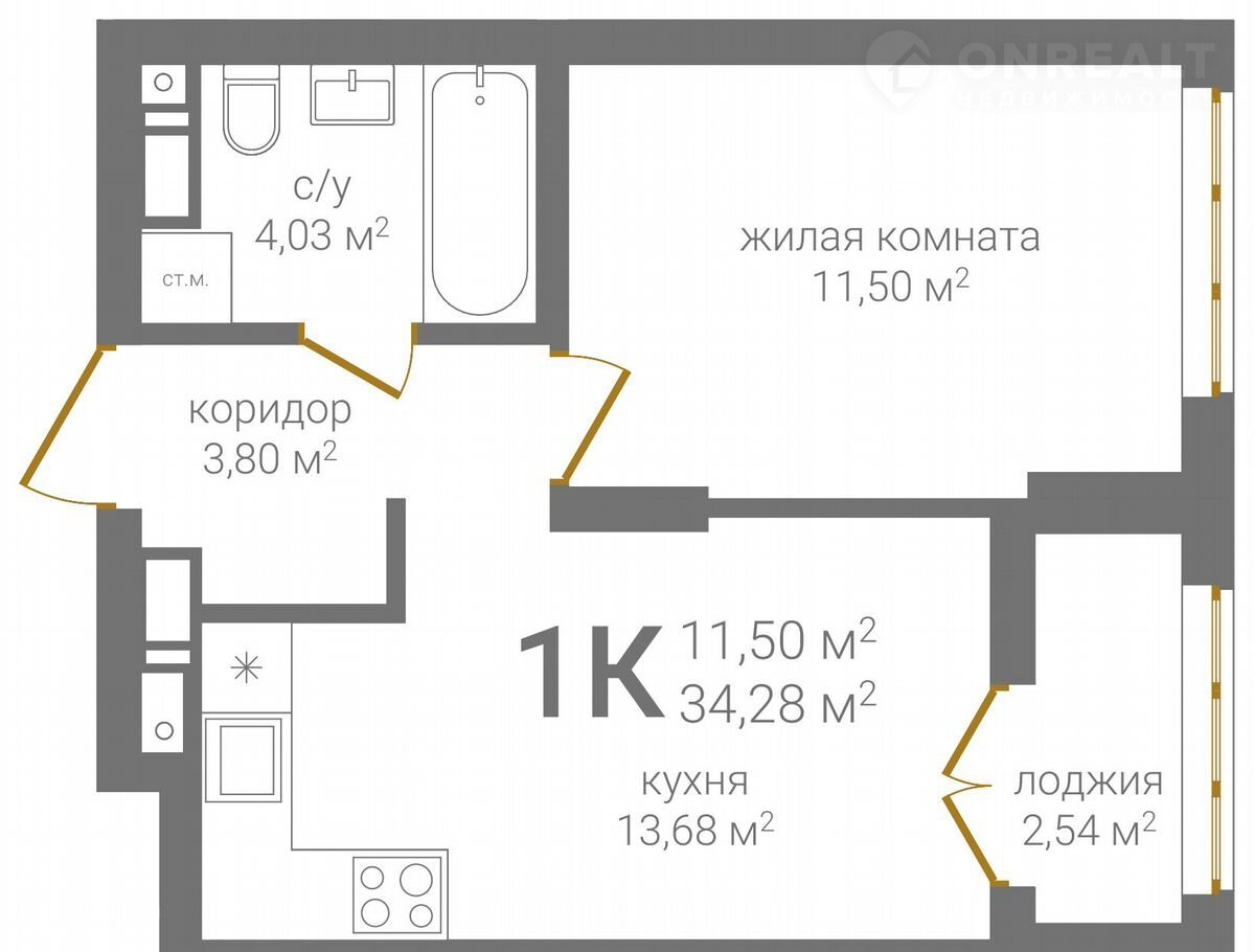 Общая площадь 34.3 м2