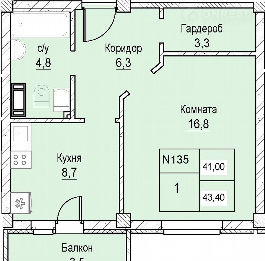 Общая площадь 41 м2