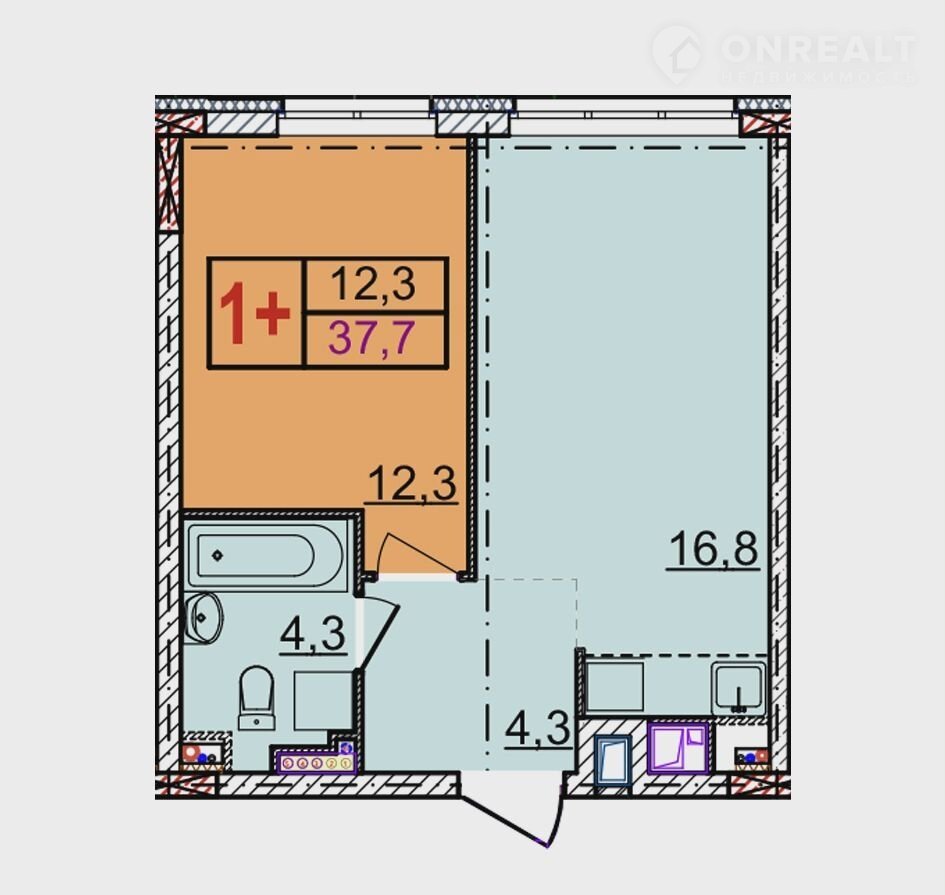 Общая площадь 37.7 м2