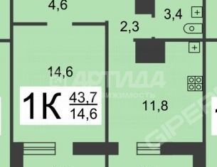 1-комнатная квартира на продажу, 43.6 м2, улица Богдановича, 6к1