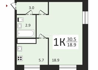 Общая площадь: 30.6 м2