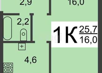 1-ком. квартира на продажу, 25.1 м2, улица Спутника, 1