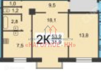 Продам двухкомнатную квартиру, 52.9 м2, улица Подводников, 26