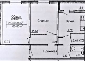 Продаю двухкомнатную квартиру, 59.8 м2, улица 40 лет Победы, 20