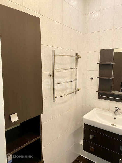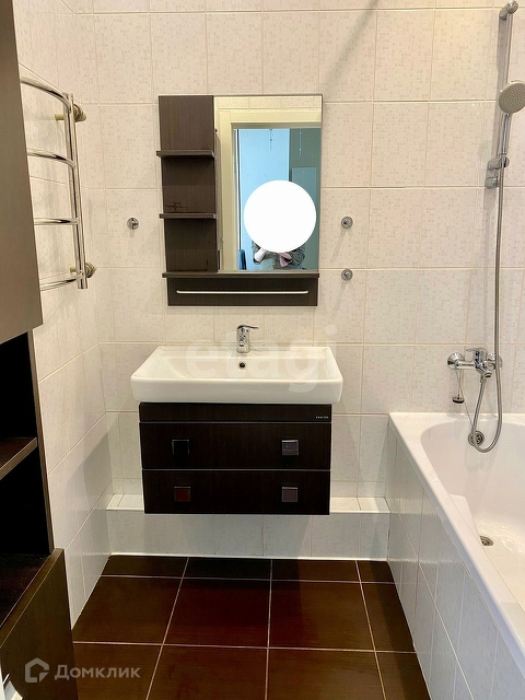 В ванной теплый пол, акриловая ванна.