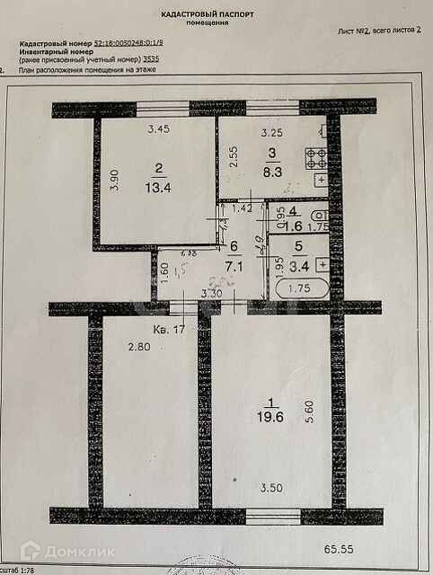 2-комнатная квартира, 53.4 м2, этаж 1 / 5, на продажу в Нижнем Новгороде, улица Подводников, 29
