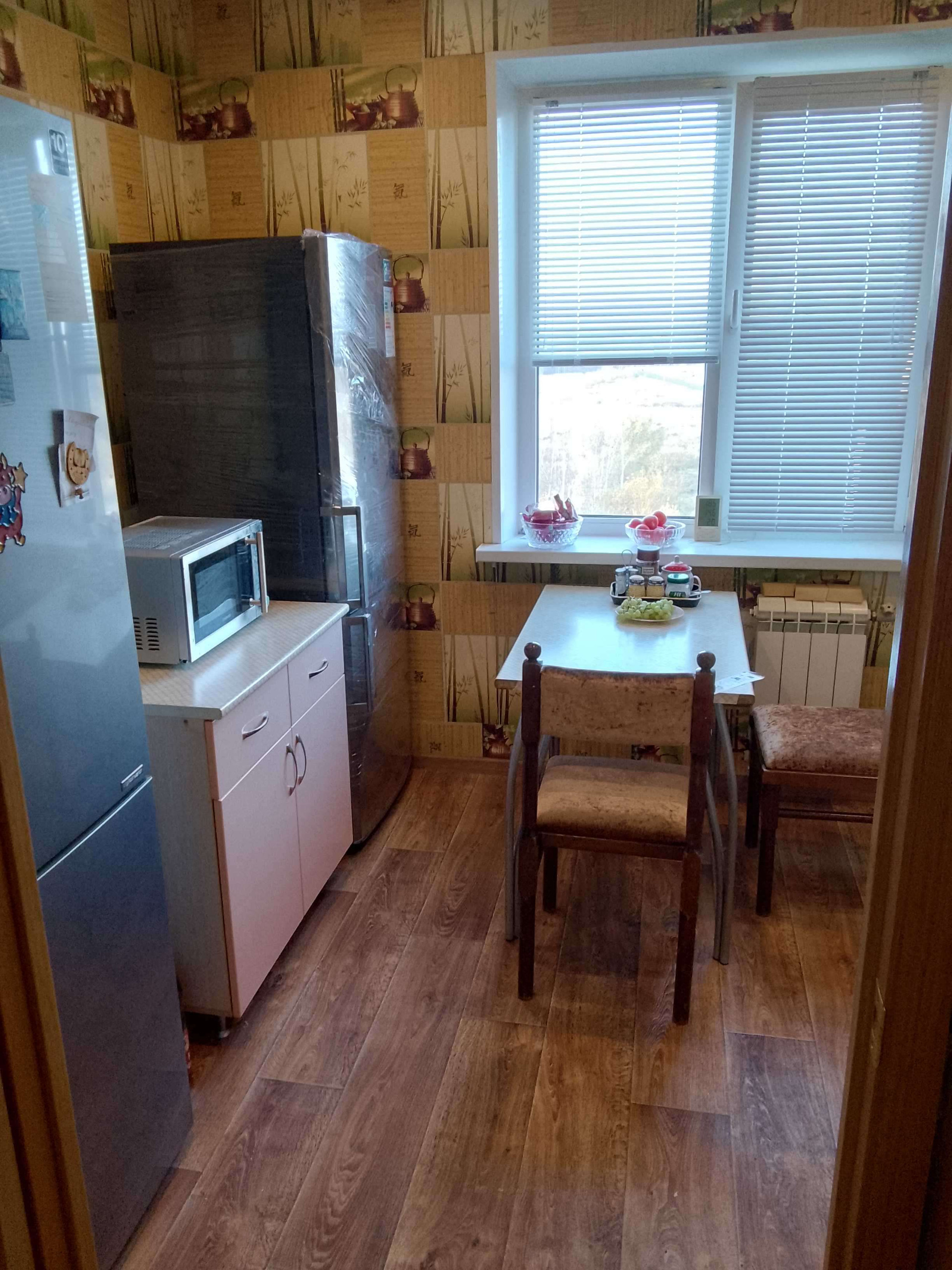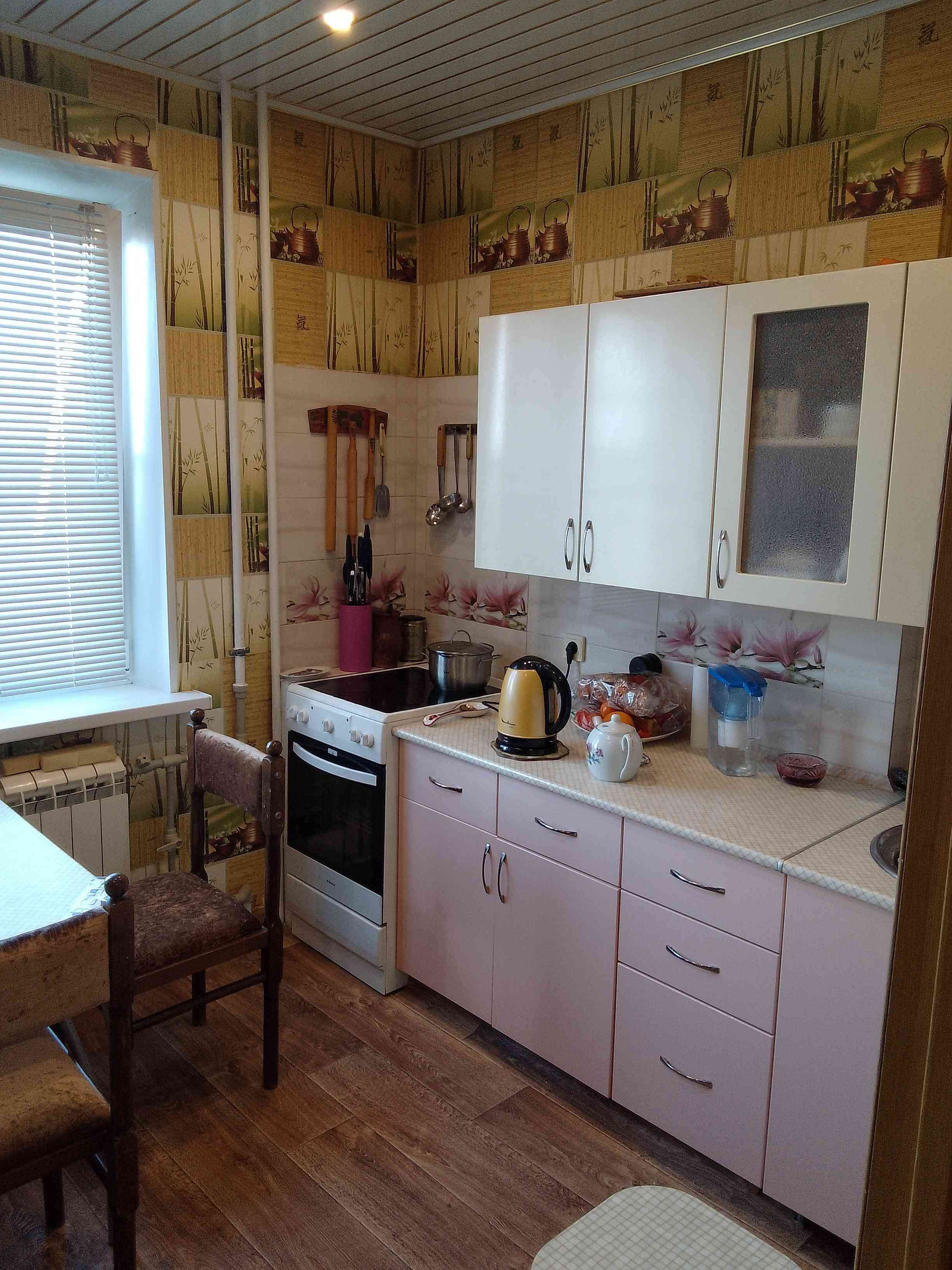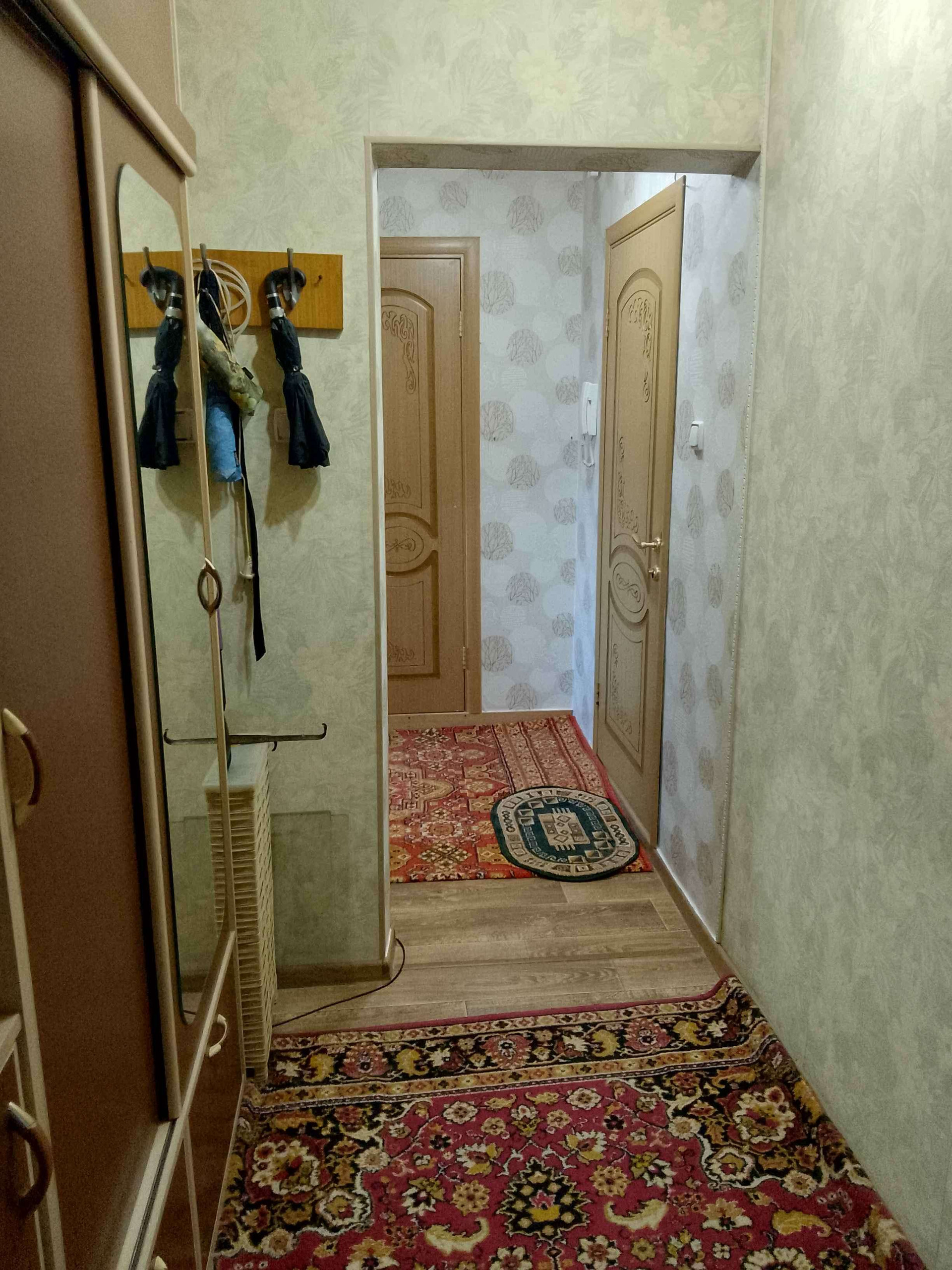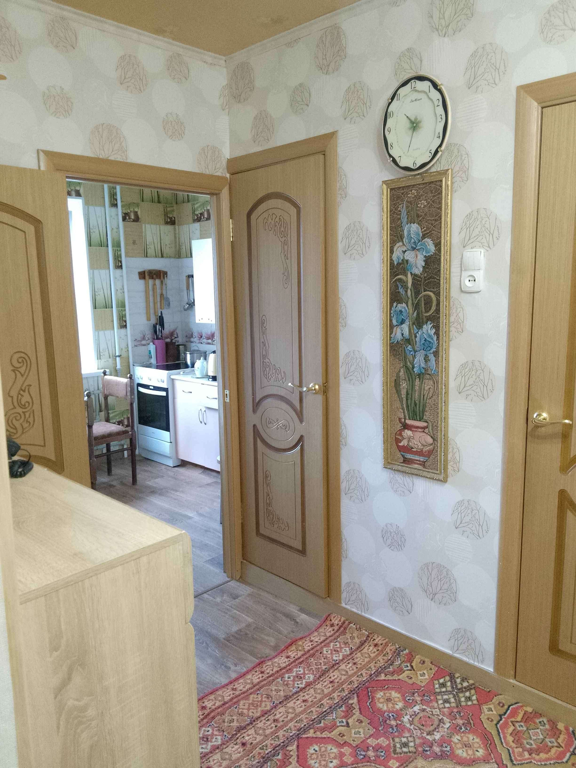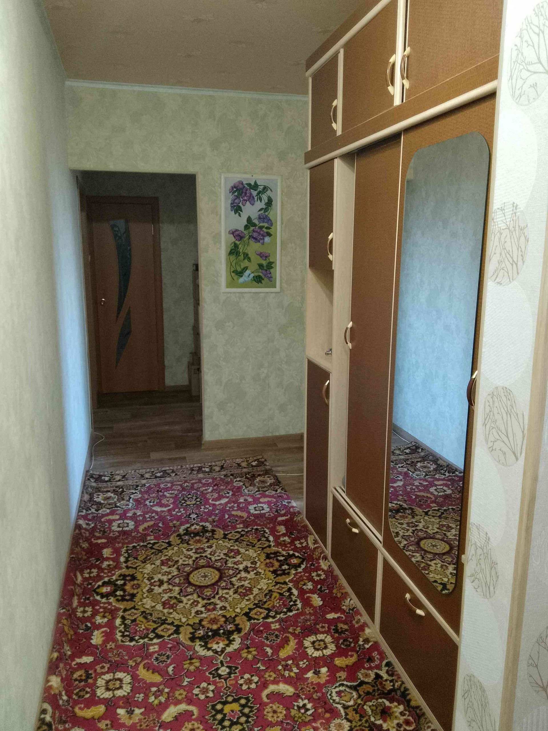 Кухонный гарнитур, спальный гарнитур, шкаф-купе в коридоре, большая обувница остаются новому владельцу