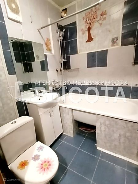 В ванной комнате настенная и напольная плитка.