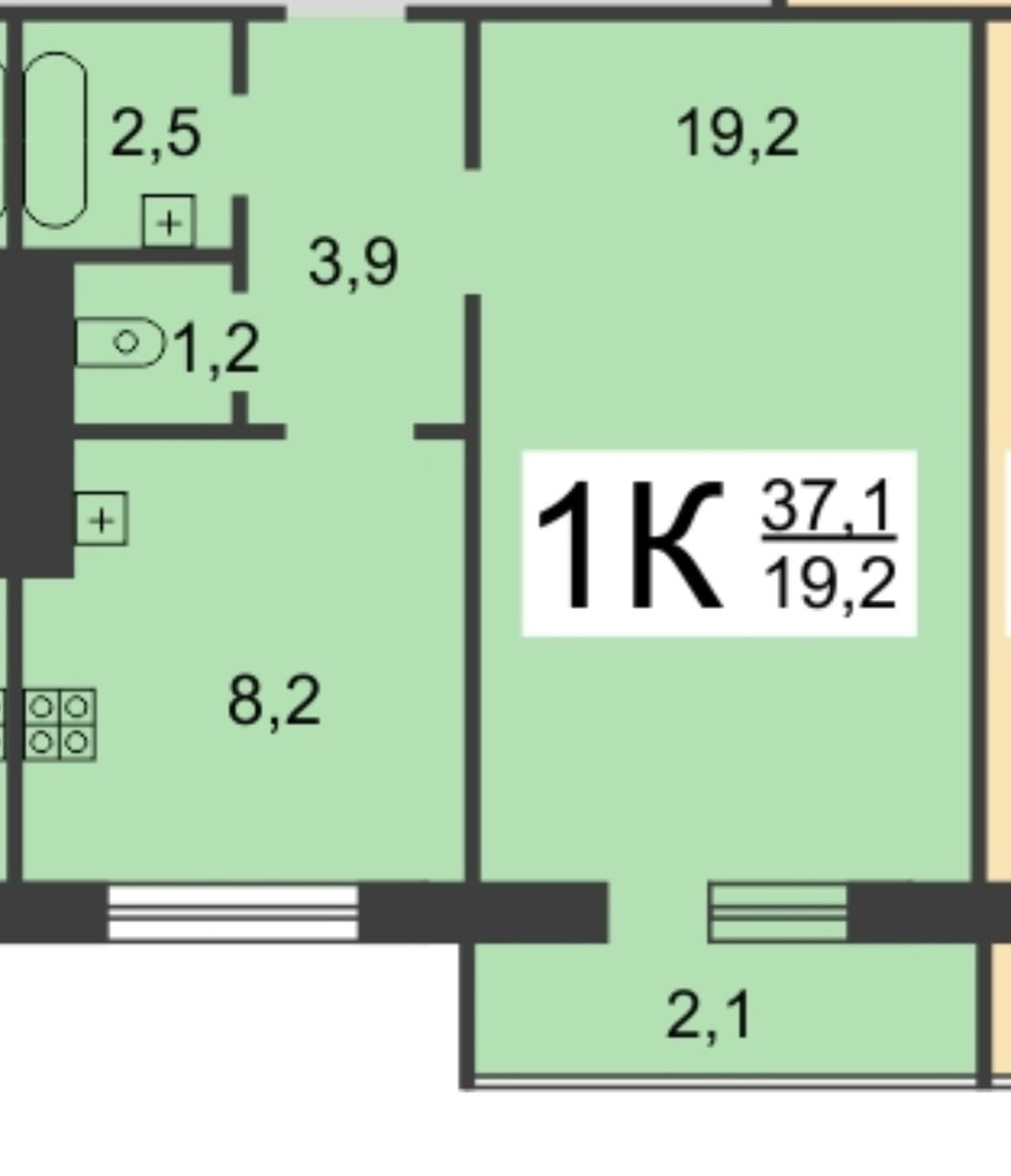 Общая площадь 37.1 м2
