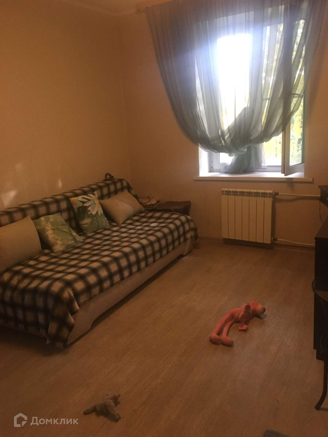 На полу ламинат, балконов - нет, лоджий - нет, окна выходят во двор и на улицу.