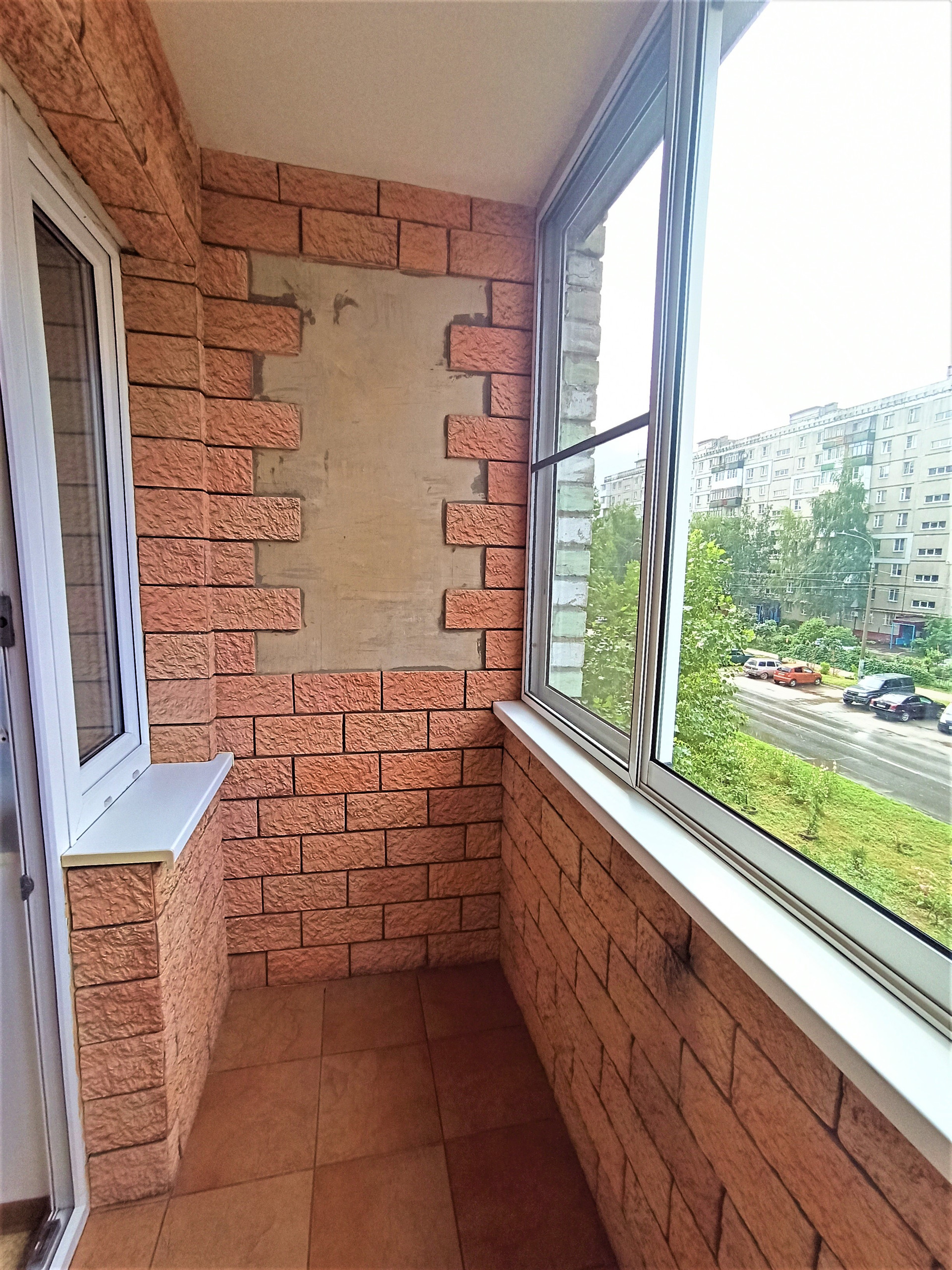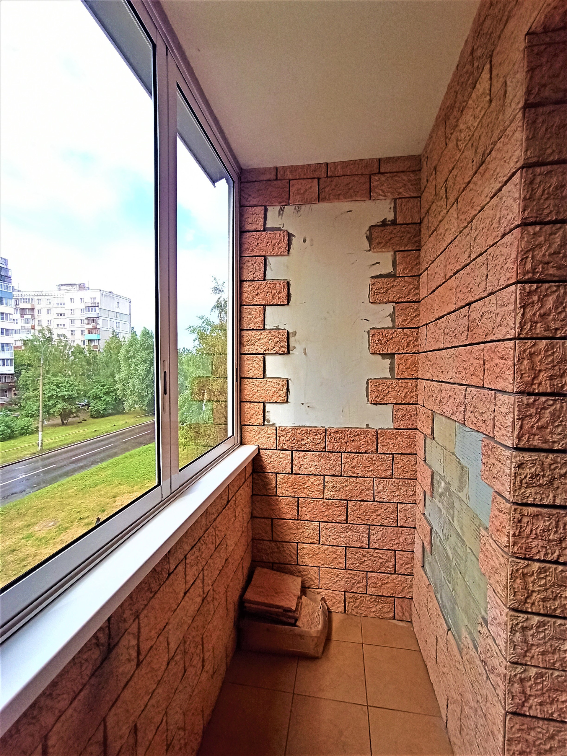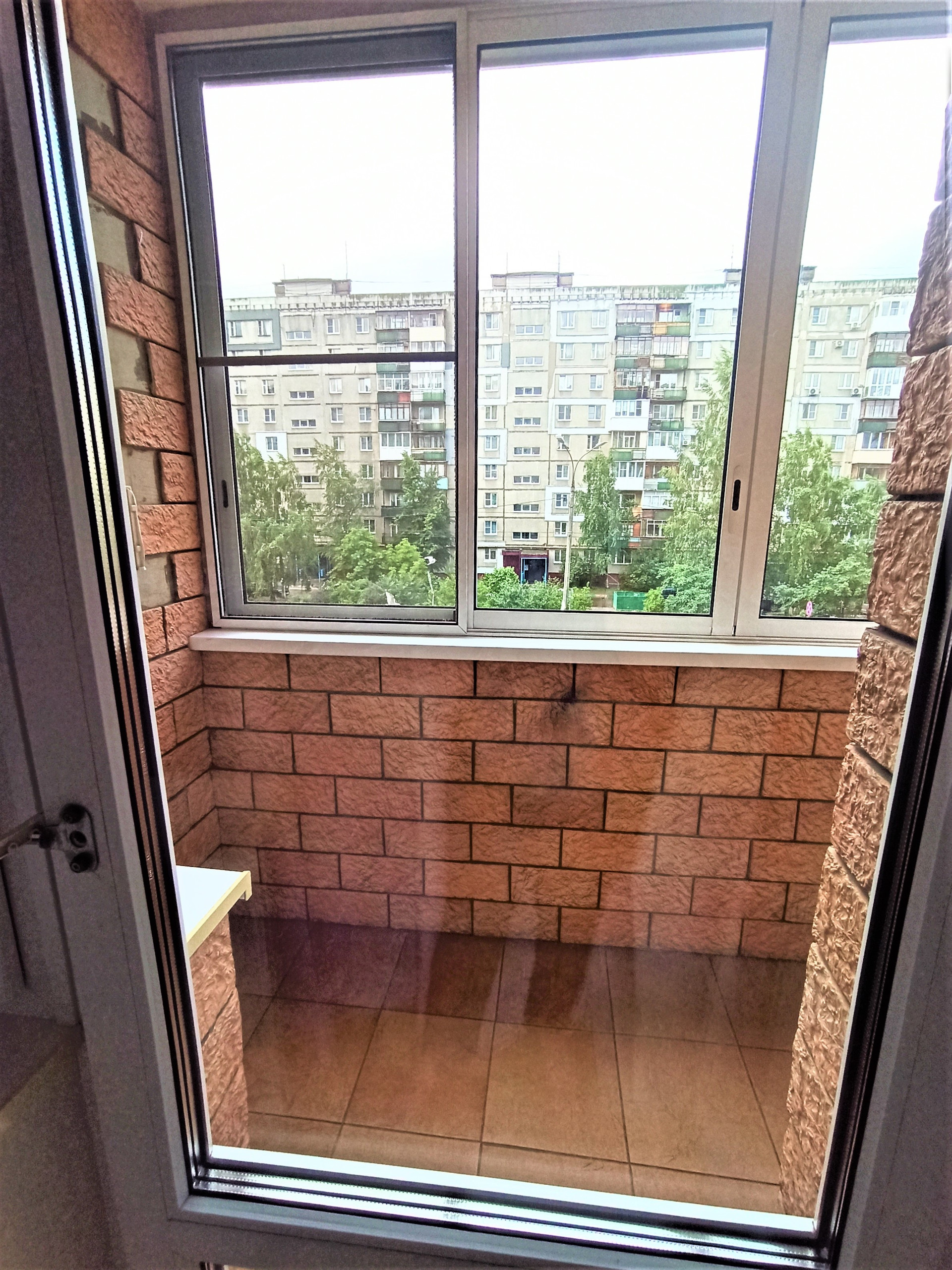 3) окна и лоджия остеклены ПВХ, пол лоджии - в плитке, под окном кухни устроен практичный шкаф-холодильник;