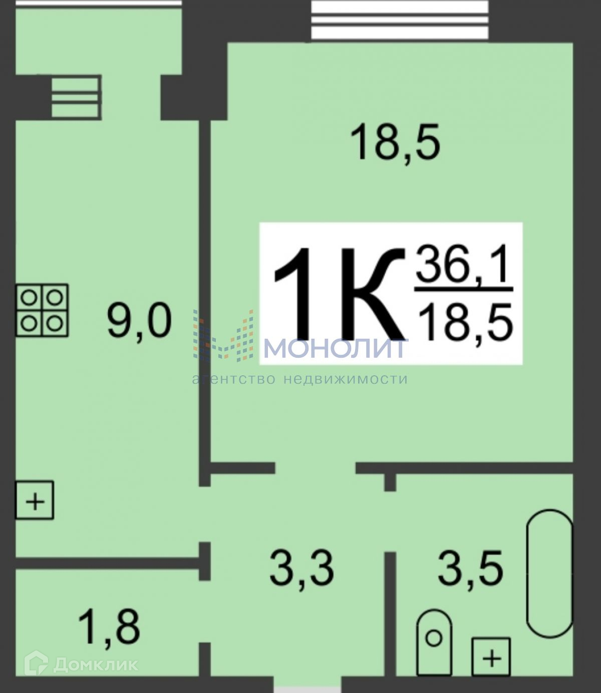 Общая площадь 36 м2