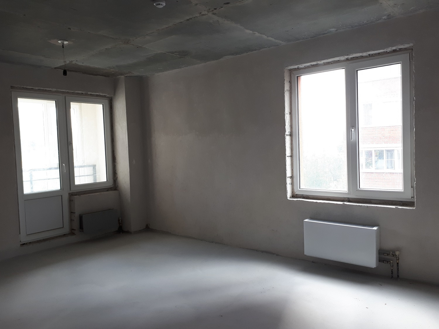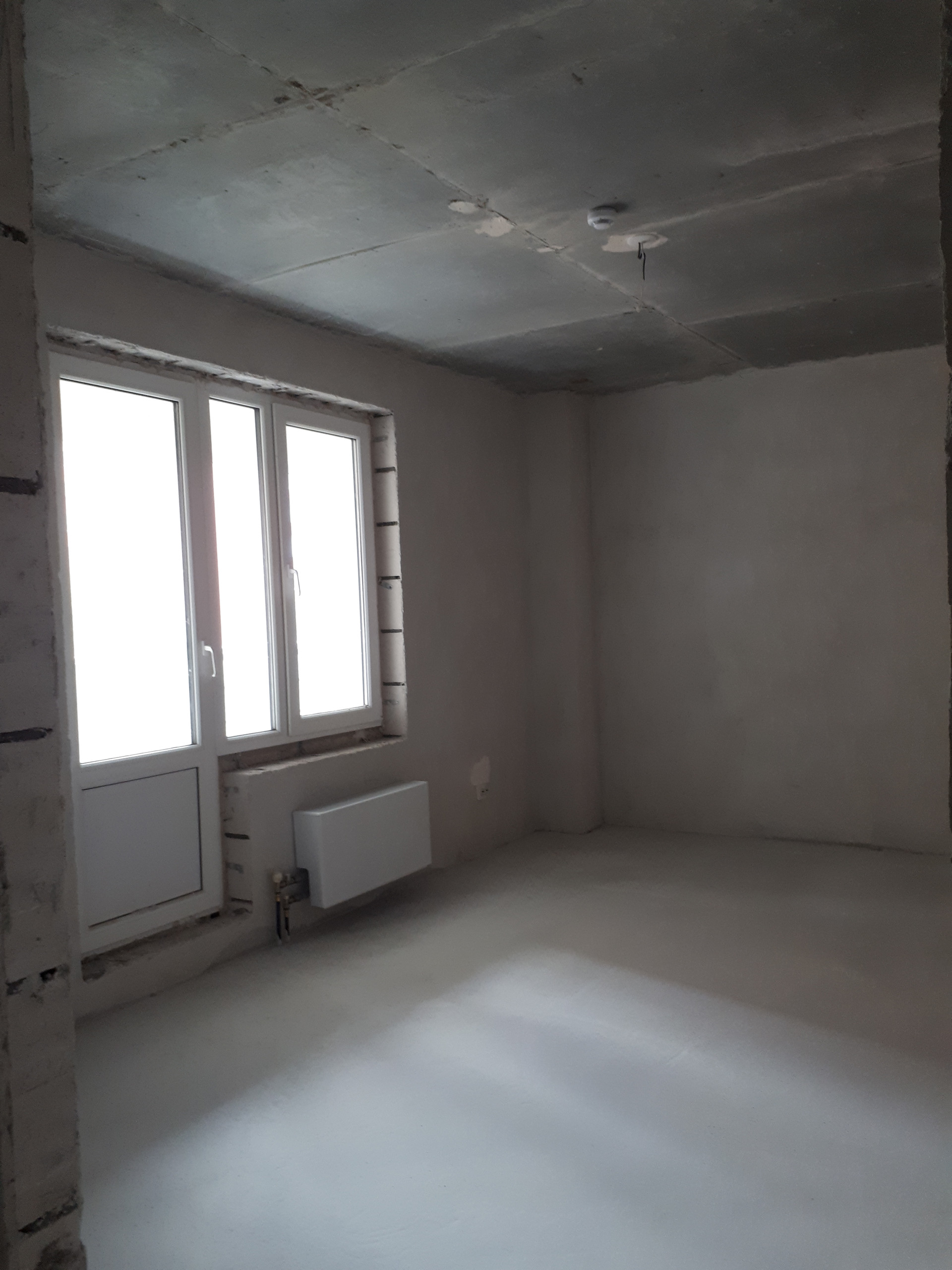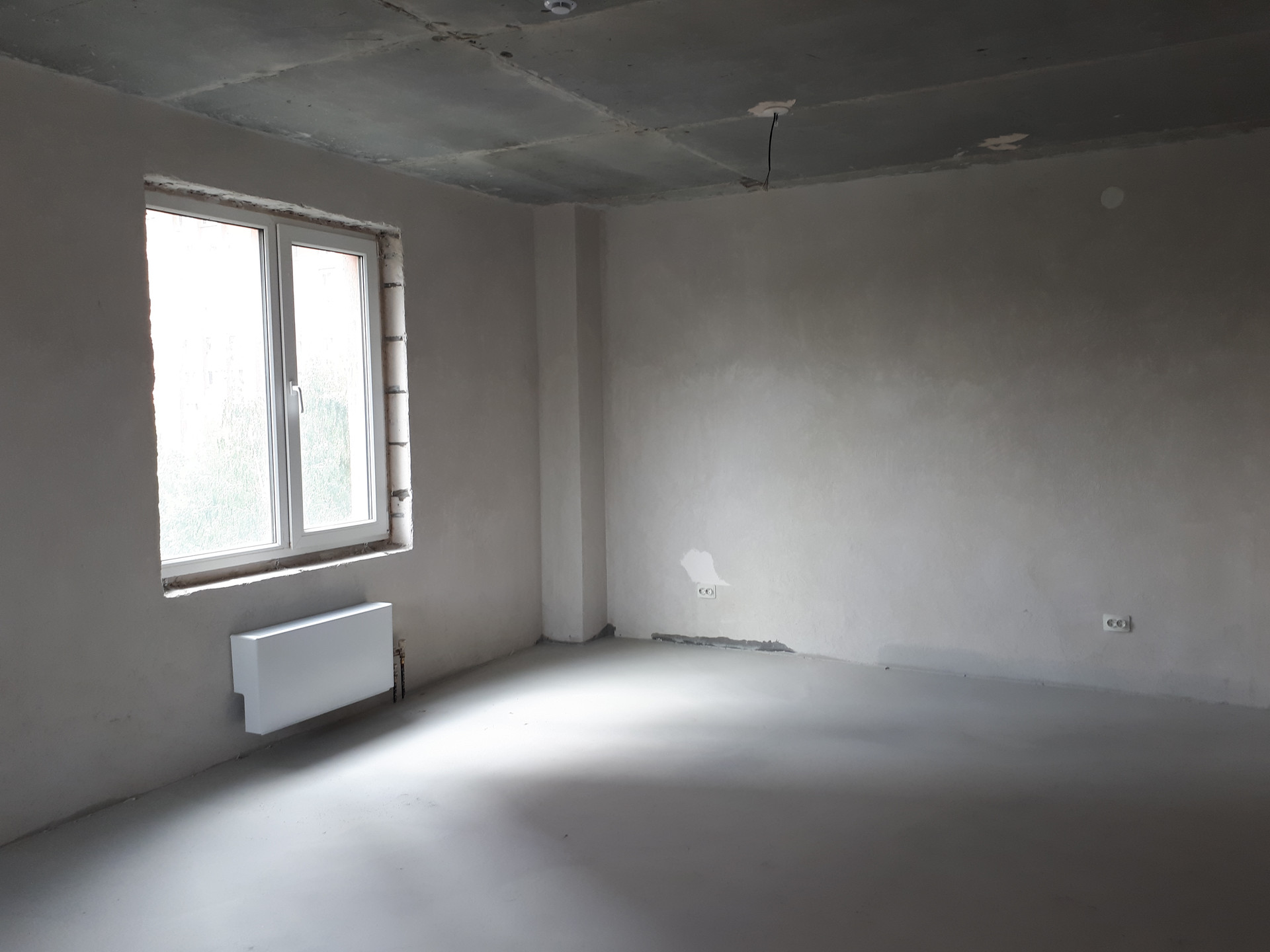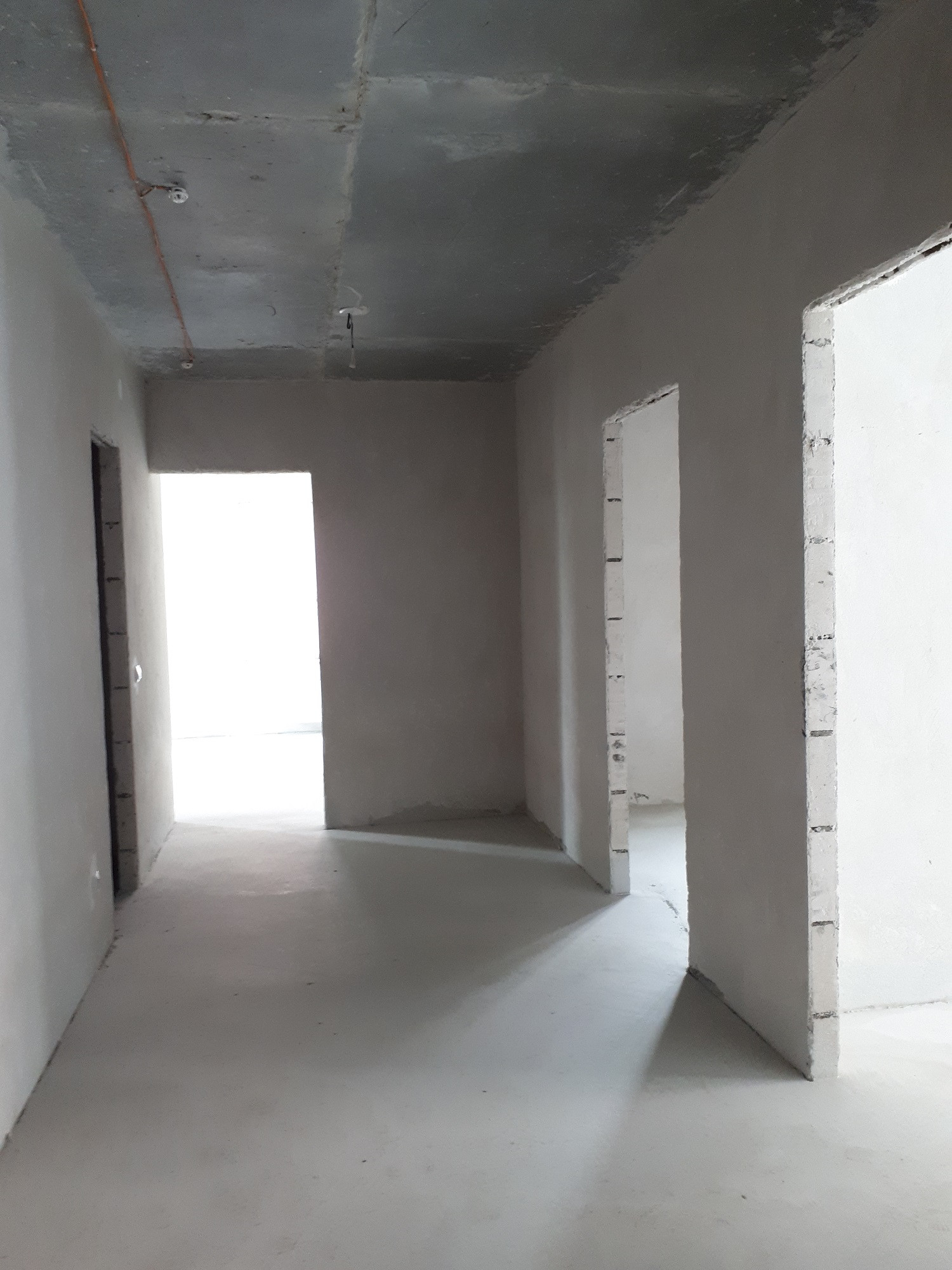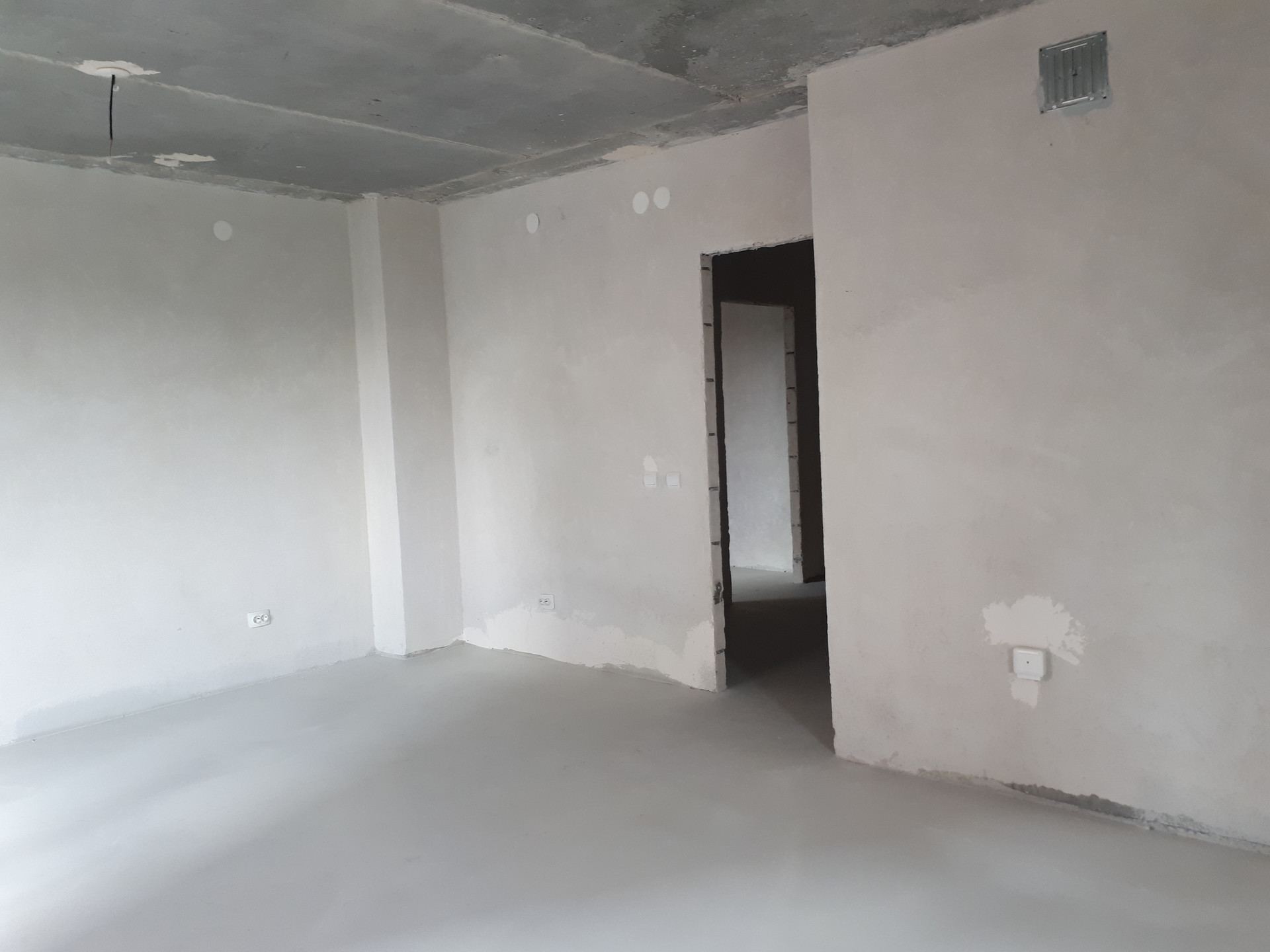 Выполнена предчистовая отделка с заливкой полов и штукатуркой стен.
