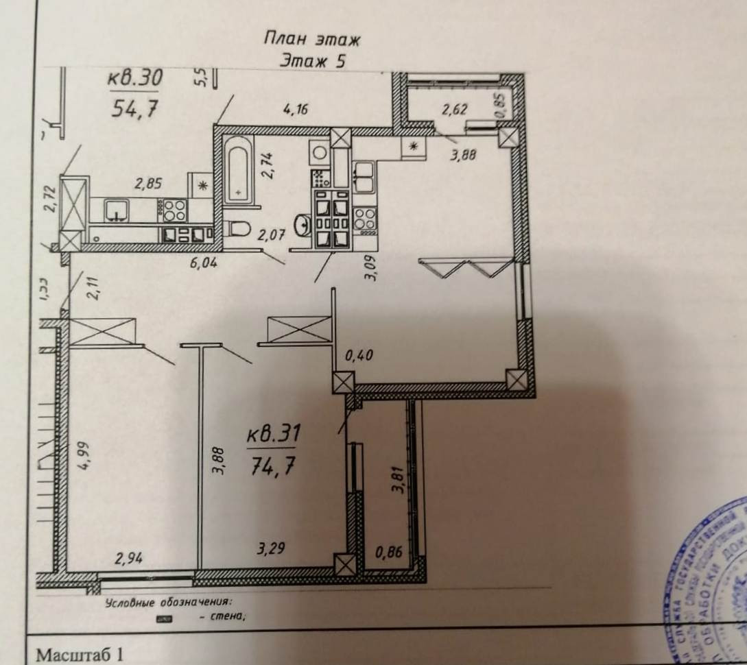 Общая площадь 74.7 м2