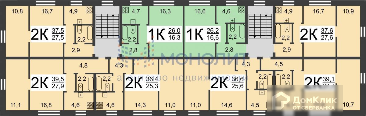 Общая площадь 39.1 м2