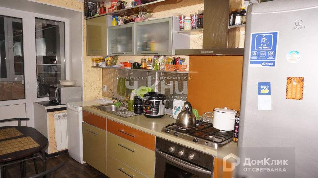 На кухне остается кухонный гарнитур с встроенной техникой. В квартире имеется кладовое помещение 1, 5 кв.м, что важно для небольшой квартиры.