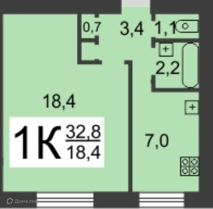 Общая площадь 32.8 м2
