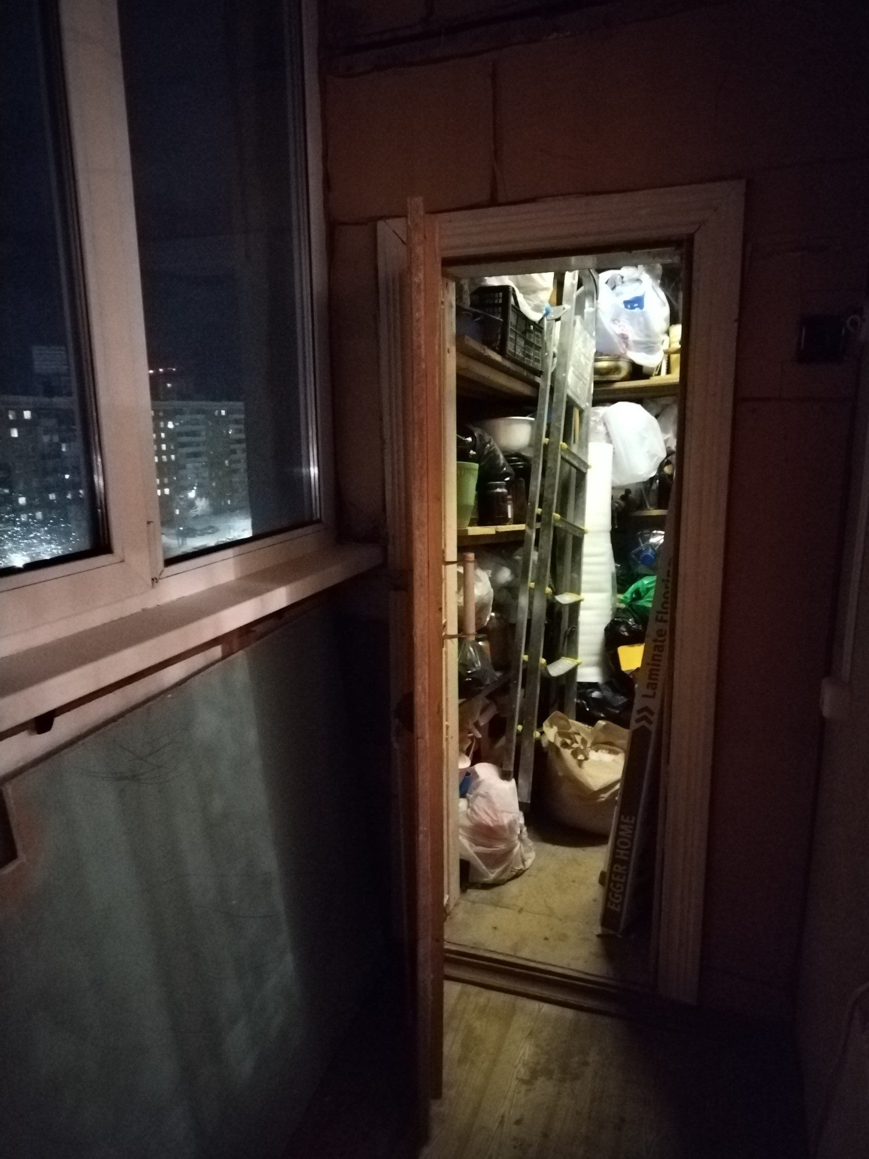 Есть две кладовки: одна в квартире, другая на лоджии (очень большая, не входит в площадь квартиры, не занимает пространство лоджии).