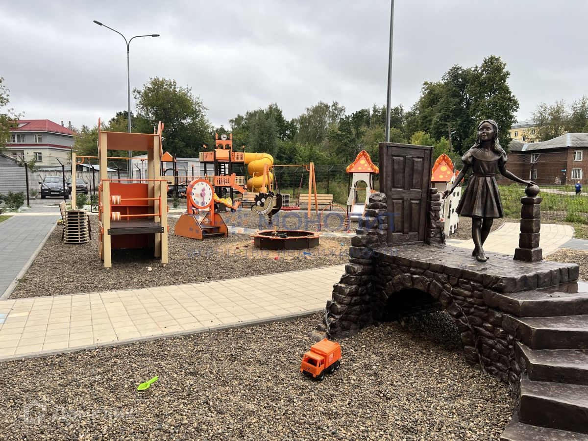 Зеленый двор. Детская площадка с горками и каруселями.