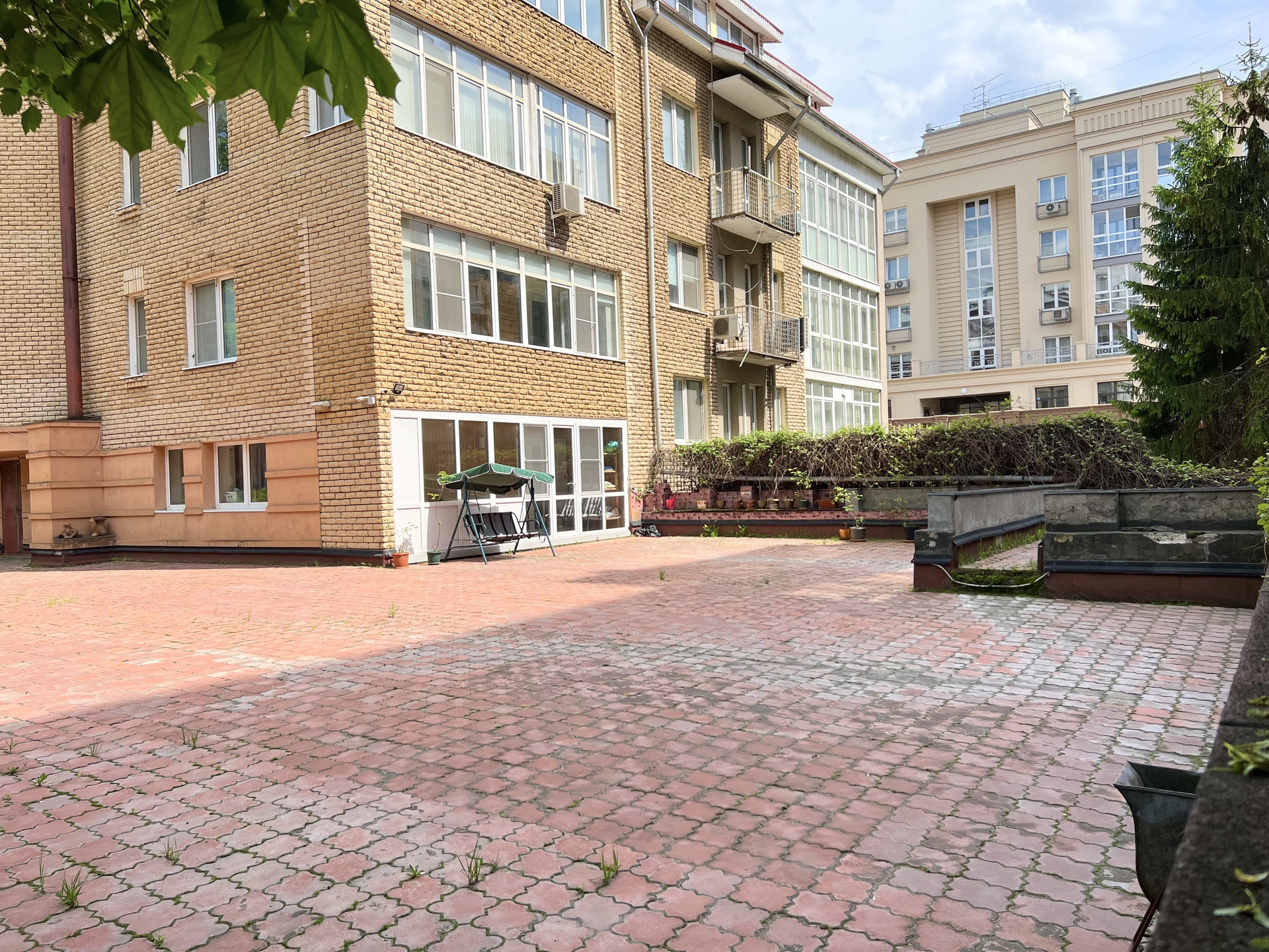 Закрытая охраняемая территория, по периметру видеонаблюдение плюс круглосуточный консьерж, своя общедомовая терраса, усыпанная зеленью, цветами и растущим виноградом.